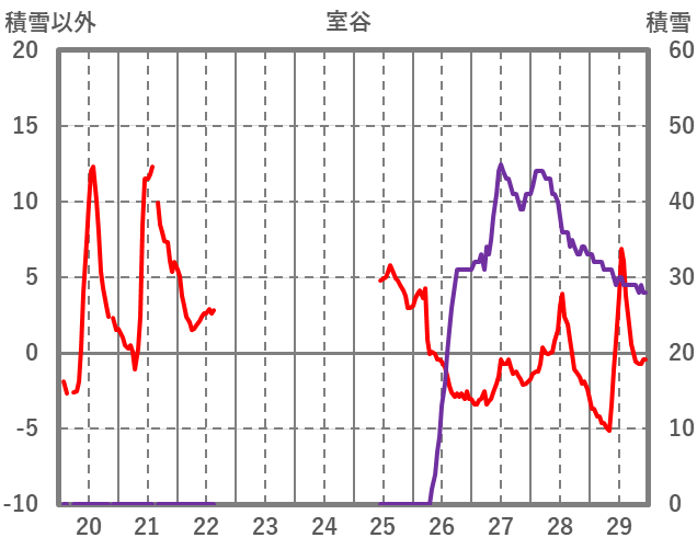 | 日 | 時 | 気温 | 降水 | 風向/風速 | 日照 | 積雪 | 降雪 |