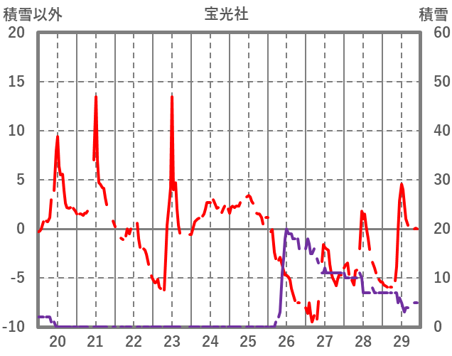 | 日 | 時 | 気温 | 降水 | 風向/風速 | 日照 | 積雪 | 降雪 |