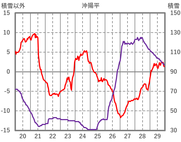 | 日 | 時 | 気温 | 降水 | 風向/風速 | 日照 | 積雪 | 降雪 |