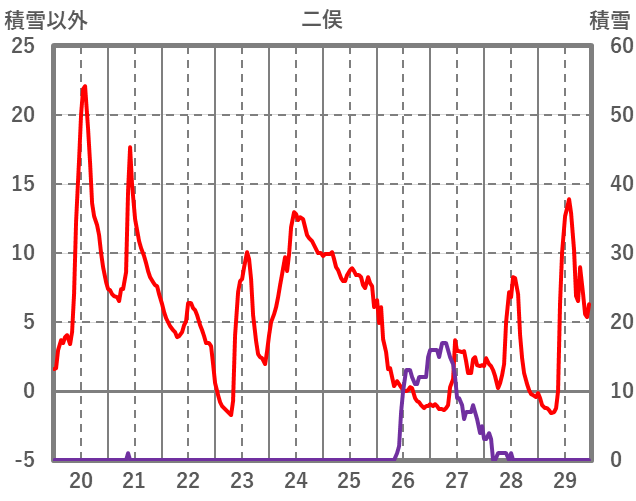| 日 | 時 | 気温 | 降水 | 風向/風速 | 日照 | 積雪 | 降雪 |