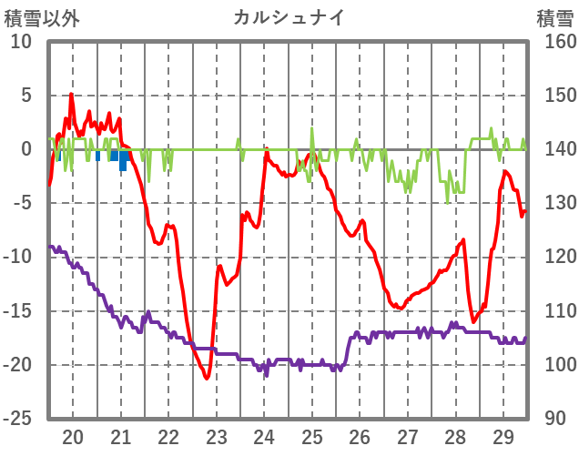 | 日 | 時 | 気温 | 降水 | 風向/風速 | 日照 | 積雪 | 降雪 |