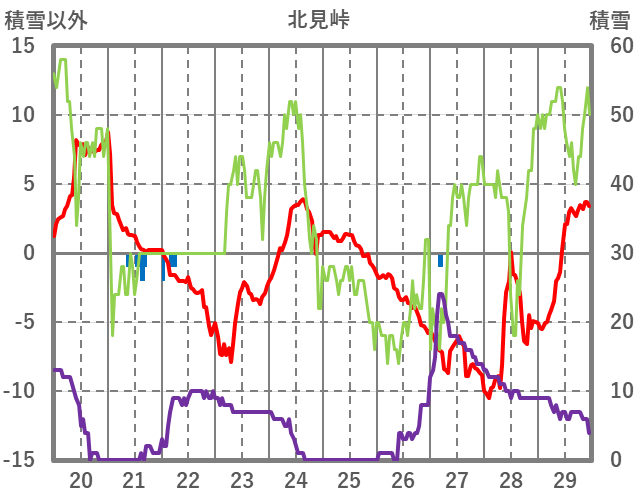 | 日 | 時 | 気温 | 降水 | 風向/風速 | 日照 | 積雪 | 降雪 |