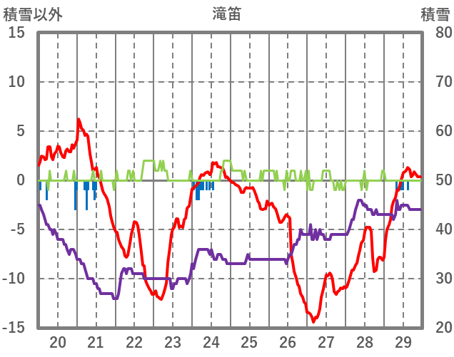 | 日 | 時 | 気温 | 降水 | 風向/風速 | 日照 | 積雪 | 降雪 |