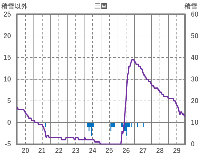 | 日 | 時 | 気温 | 降水 | 風向/風速 | 日照 | 積雪 | 降雪 |