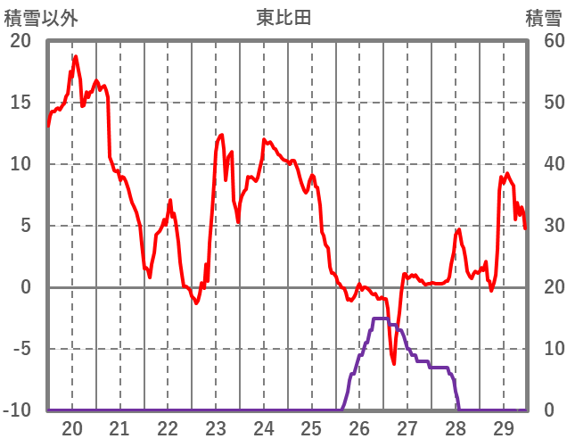 | 日 | 時 | 気温 | 降水 | 風向/風速 | 日照 | 積雪 | 降雪 |
