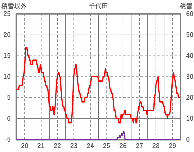 | 日 | 時 | 気温 | 降水 | 風向/風速 | 日照 | 積雪 | 降雪 |