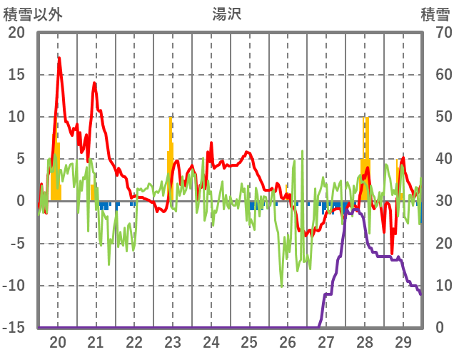 | 日 | 時 | 気温 | 降水 | 風向/風速 | 日照 | 積雪 | 降雪 |