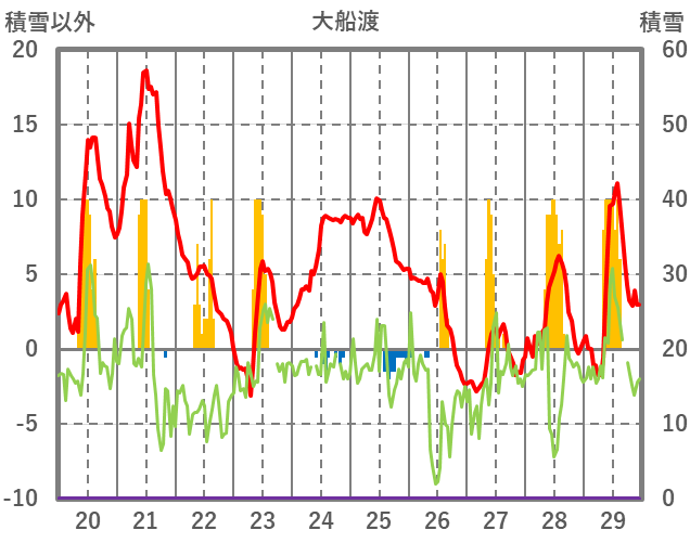 | 日 | 時 | 気温 | 降水 | 風向/風速 | 日照 | 積雪 | 降雪 |