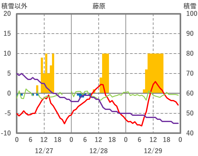 | 日 | 時 | 気温 | 降水 | 風向/風速 | 日照 | 積雪 | 降雪 |