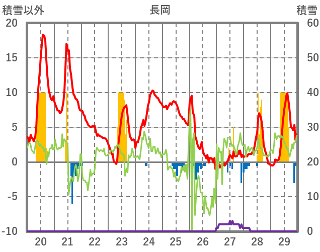 | 日 | 時 | 気温 | 降水 | 風向/風速 | 日照 | 積雪 | 降雪 |