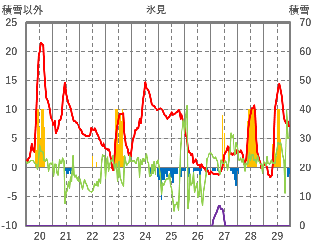 | 日 | 時 | 気温 | 降水 | 風向/風速 | 日照 | 積雪 | 降雪 |