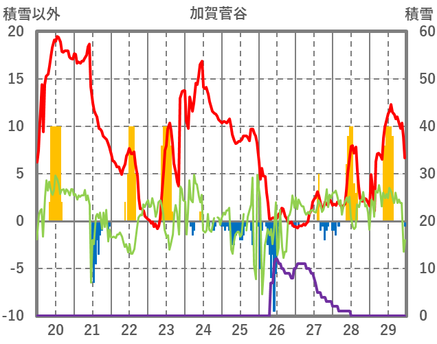 | 日 | 時 | 気温 | 降水 | 風向/風速 | 日照 | 積雪 | 降雪 |