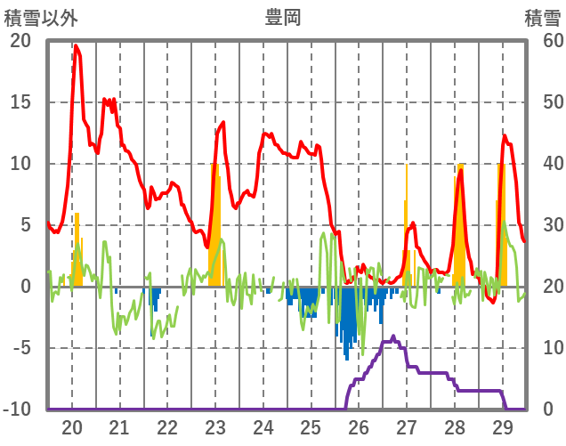 | 日 | 時 | 気温 | 降水 | 風向/風速 | 日照 | 積雪 | 降雪 |