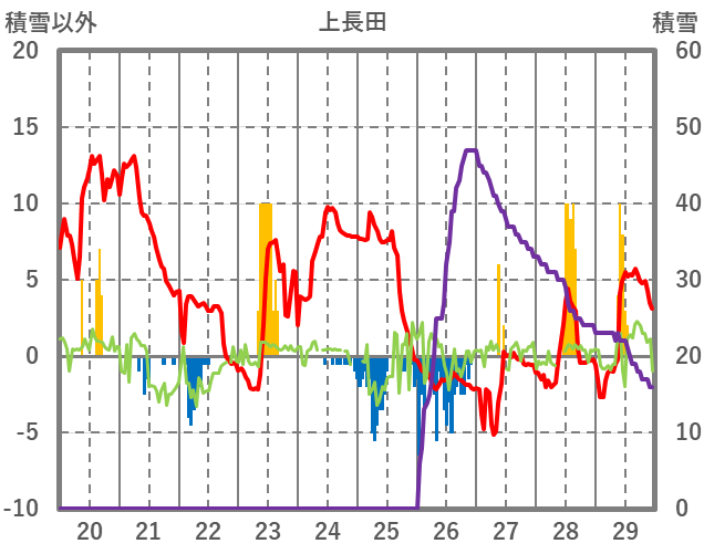 | 日 | 時 | 気温 | 降水 | 風向/風速 | 日照 | 積雪 | 降雪 |