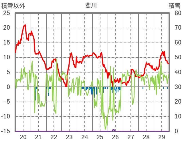 | 日 | 時 | 気温 | 降水 | 風向/風速 | 日照 | 積雪 | 降雪 |