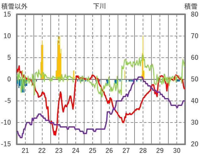 | 日 | 時 | 気温 | 降水 | 風向/風速 | 日照 | 積雪 | 降雪 |