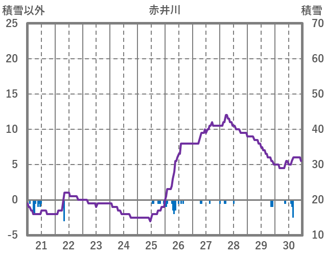 | 日 | 時 | 気温 | 降水 | 風向/風速 | 日照 | 積雪 | 降雪 |