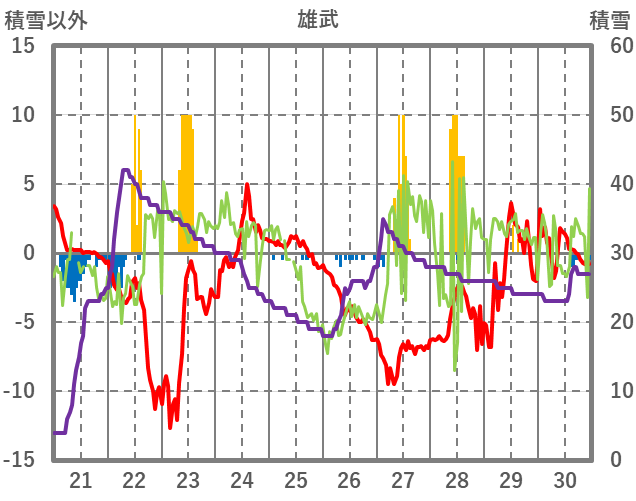 | 日 | 時 | 気温 | 降水 | 風向/風速 | 日照 | 積雪 | 降雪 |