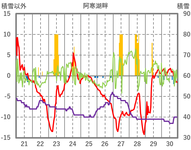 | 日 | 時 | 気温 | 降水 | 風向/風速 | 日照 | 積雪 | 降雪 |