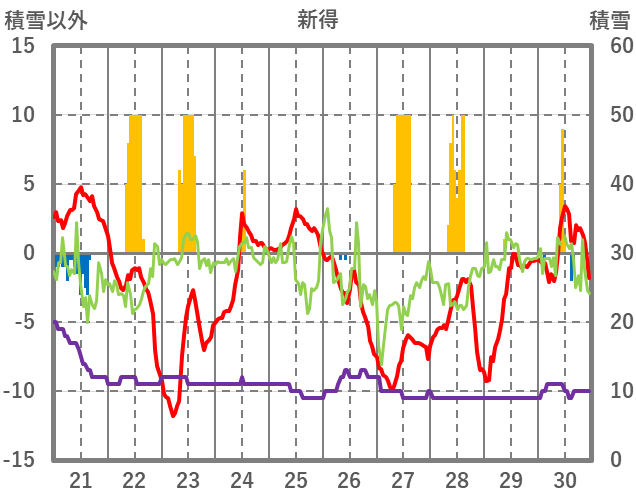 | 日 | 時 | 気温 | 降水 | 風向/風速 | 日照 | 積雪 | 降雪 |