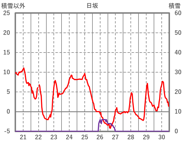 | 日 | 時 | 気温 | 降水 | 風向/風速 | 日照 | 積雪 | 降雪 |