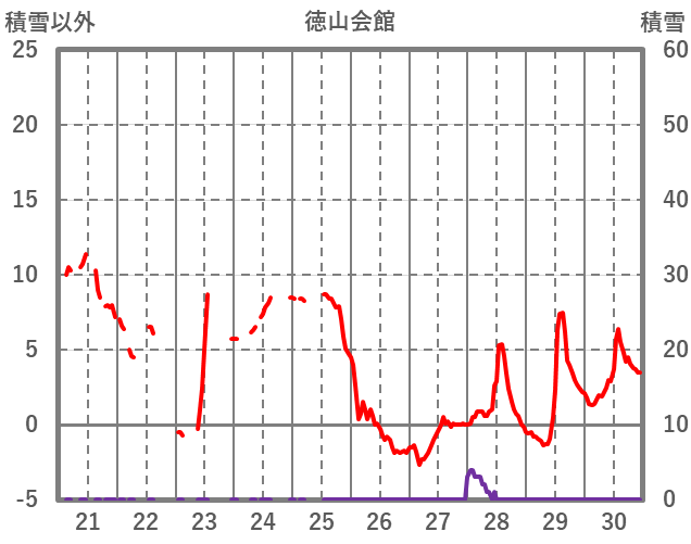 | 日 | 時 | 気温 | 降水 | 風向/風速 | 日照 | 積雪 | 降雪 |