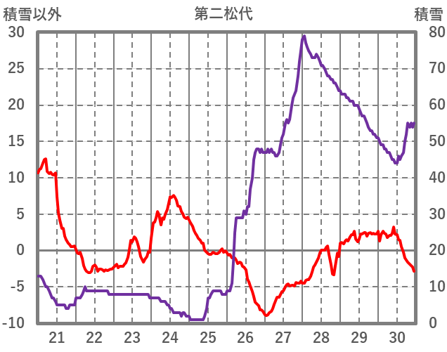 | 日 | 時 | 気温 | 降水 | 風向/風速 | 日照 | 積雪 | 降雪 |