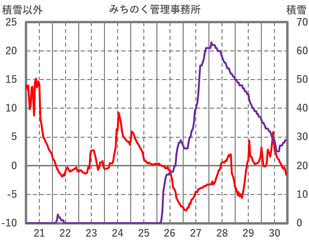 | 日 | 時 | 気温 | 降水 | 風向/風速 | 日照 | 積雪 | 降雪 |