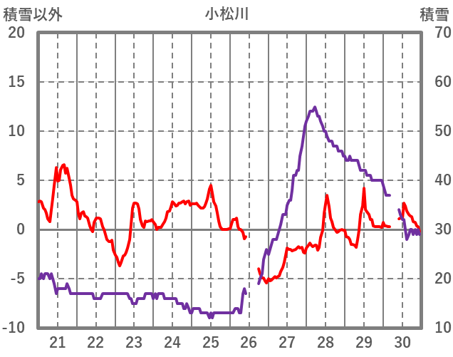 | 日 | 時 | 気温 | 降水 | 風向/風速 | 日照 | 積雪 | 降雪 |