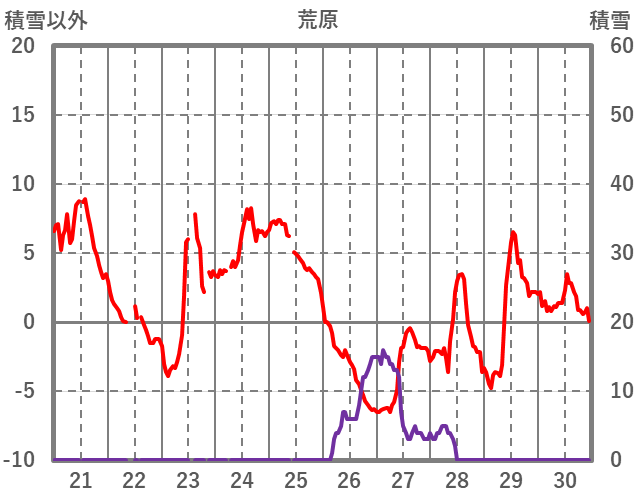 | 日 | 時 | 気温 | 降水 | 風向/風速 | 日照 | 積雪 | 降雪 |