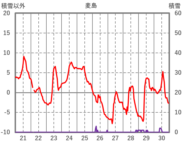 | 日 | 時 | 気温 | 降水 | 風向/風速 | 日照 | 積雪 | 降雪 |