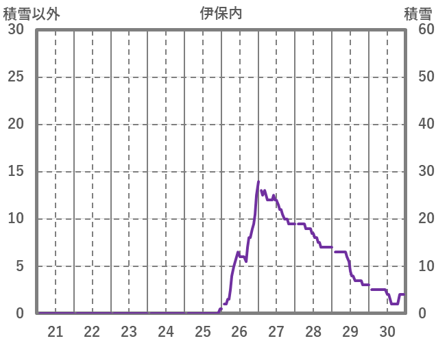 | 日 | 時 | 気温 | 降水 | 風向/風速 | 日照 | 積雪 | 降雪 |