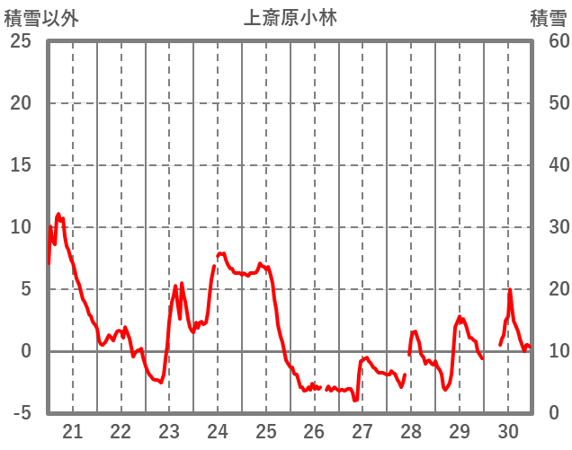 | 日 | 時 | 気温 | 降水 | 風向/風速 | 日照 | 積雪 | 降雪 |