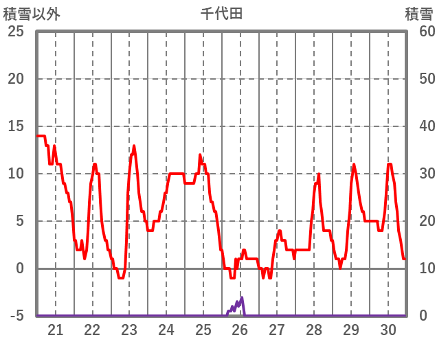 | 日 | 時 | 気温 | 降水 | 風向/風速 | 日照 | 積雪 | 降雪 |