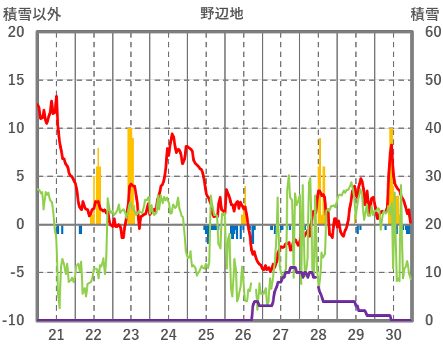 | 日 | 時 | 気温 | 降水 | 風向/風速 | 日照 | 積雪 | 降雪 |