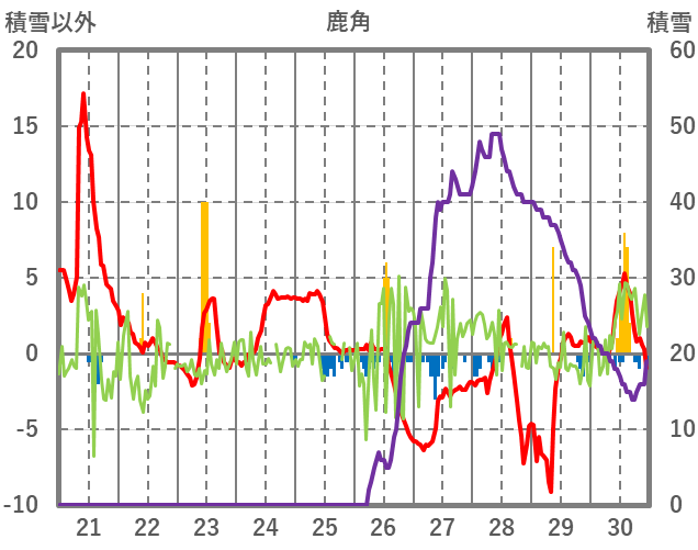 | 日 | 時 | 気温 | 降水 | 風向/風速 | 日照 | 積雪 | 降雪 |