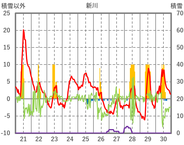 | 日 | 時 | 気温 | 降水 | 風向/風速 | 日照 | 積雪 | 降雪 |