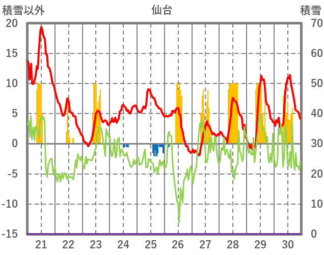 | 日 | 時 | 気温 | 降水 | 風向/風速 | 日照 | 積雪 | 降雪 |