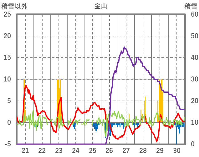| 日 | 時 | 気温 | 降水 | 風向/風速 | 日照 | 積雪 | 降雪 |