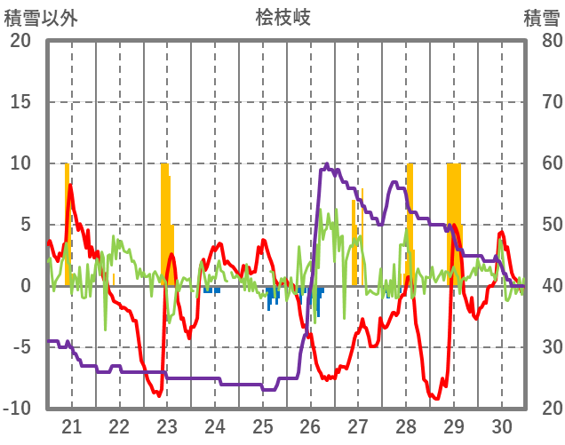 | 日 | 時 | 気温 | 降水 | 風向/風速 | 日照 | 積雪 | 降雪 |