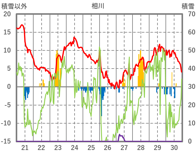 | 日 | 時 | 気温 | 降水 | 風向/風速 | 日照 | 積雪 | 降雪 |