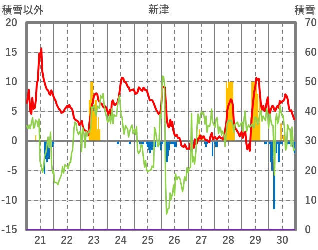 | 日 | 時 | 気温 | 降水 | 風向/風速 | 日照 | 積雪 | 降雪 |
