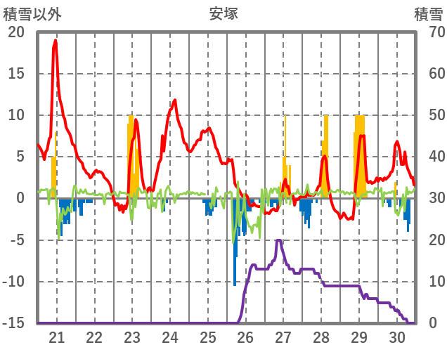 | 日 | 時 | 気温 | 降水 | 風向/風速 | 日照 | 積雪 | 降雪 |