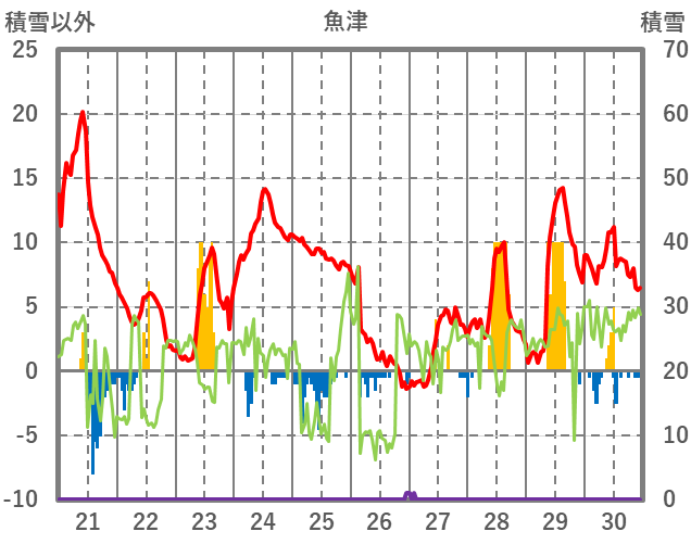 | 日 | 時 | 気温 | 降水 | 風向/風速 | 日照 | 積雪 | 降雪 |