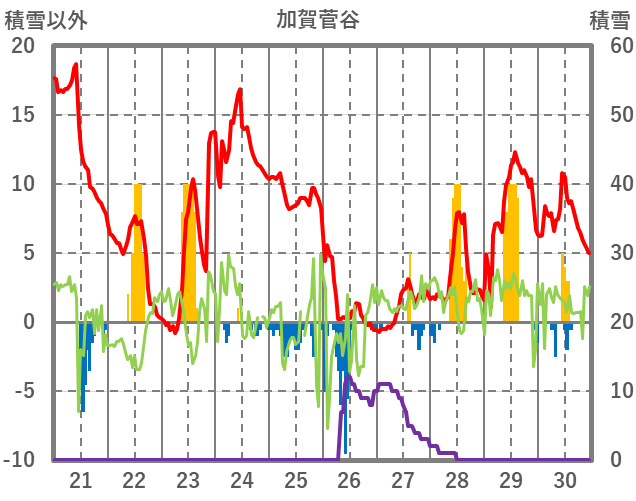 | 日 | 時 | 気温 | 降水 | 風向/風速 | 日照 | 積雪 | 降雪 |