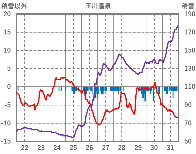 | 日 | 時 | 気温 | 降水 | 風向/風速 | 日照 | 積雪 | 降雪 |