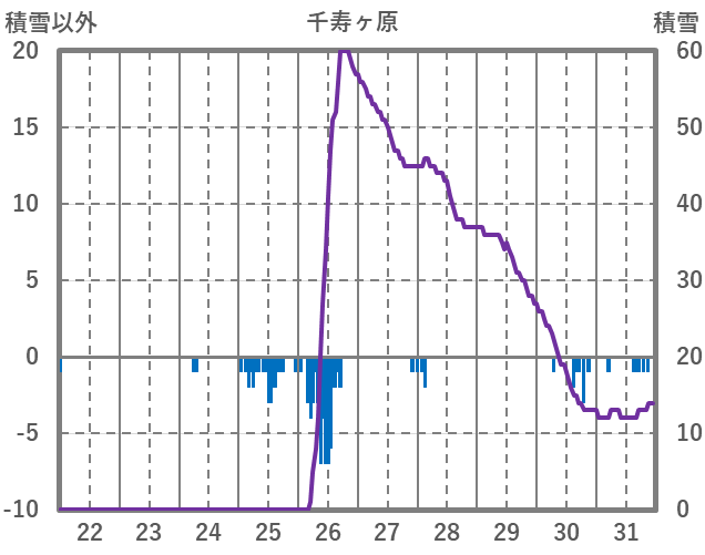 | 日 | 時 | 気温 | 降水 | 風向/風速 | 日照 | 積雪 | 降雪 |