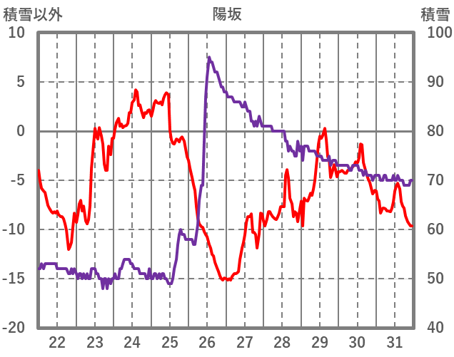 | 日 | 時 | 気温 | 降水 | 風向/風速 | 日照 | 積雪 | 降雪 |