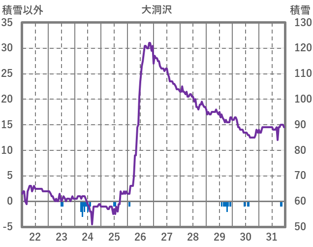 | 日 | 時 | 気温 | 降水 | 風向/風速 | 日照 | 積雪 | 降雪 |