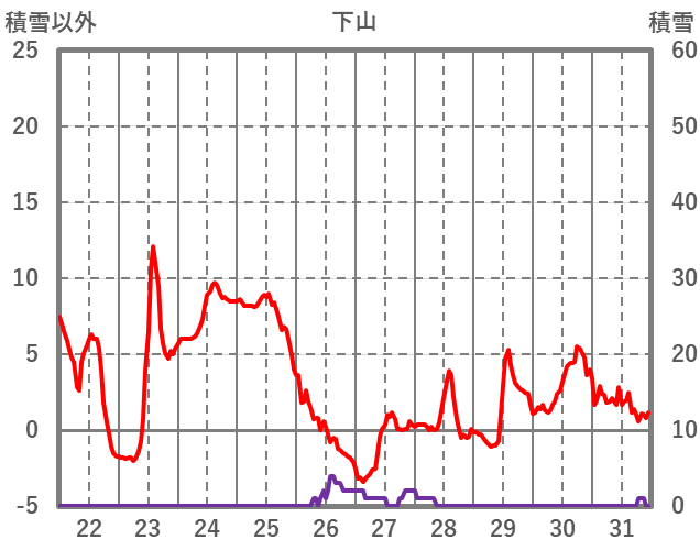 | 日 | 時 | 気温 | 降水 | 風向/風速 | 日照 | 積雪 | 降雪 |